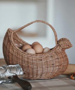 Handheld storage imitation rattan woven basket outdoor picnic fruit basket flower arrangement handheld basket children’s flower picking basket