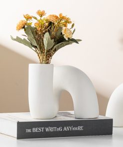 Modern simple flower arranging device, curved ceramic vase, home light luxury soft decoration ornaments