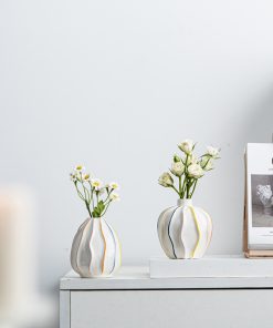 Style hand-painted striped ceramic small vase fresh and simple flower arrangement high-end home decoration