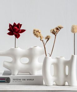 Wasabi style modern simple ceramic high-end bookshelf white matte art flower arrangement soft vase ornament