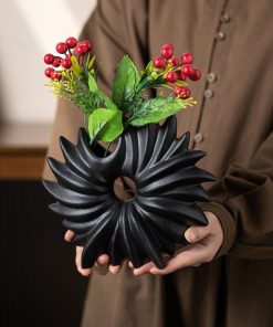 Modern simple style black and white anemone flower insulated ceramic vase light luxury home decoration