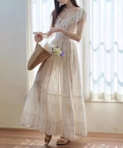 And can wake up the spring and island vacation three-dimensional floral embroidery long skirt French floral dress