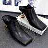 Baotou thick-soled sandals for women with soft leather wearing thick heels semi-drag summer metal buckle high heel fairy slippers
