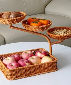 BBQ multi-layer fruit basket living room snack candy storage rack household afternoon tea imitation rattan tray
