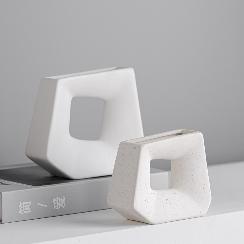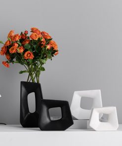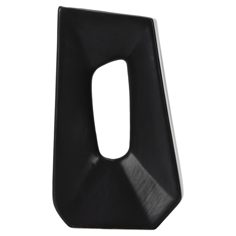 Black and white color matching, geometric quadrilateral ceramic vase, home light luxury soft decoration, handicraft ornaments