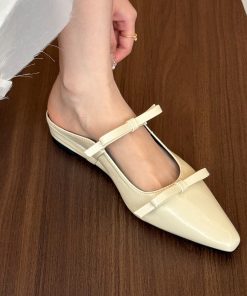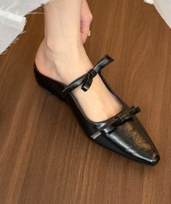 Bow pointed toe half-slippers for women in summer simple flat shoes with skirt ballet shoes
