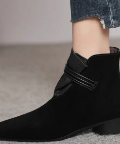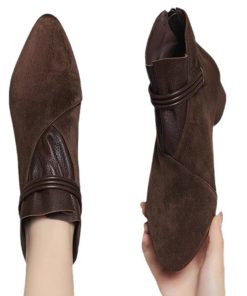 Brown plus velvet pointed toe boots for women’s short boots autumn and winter skirt with high-end simple and fashionable short boots