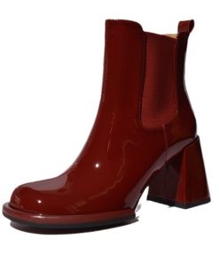 Burgundy round toe thick heel short boots for women Martin boots autumn and winter simple fashion high heel fashion thin boots