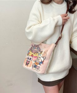 Cartoon large-capacity canvas bag female college student commuting out shoulder bag crossbody bag trendy toy bag