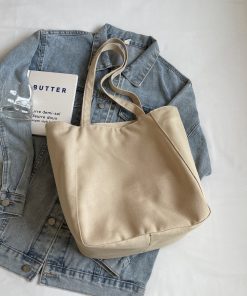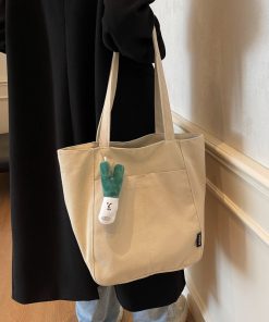 Casual large capacity canvas bag thickened and solid tote bag fashionable shoulder bag college student class commuting bag