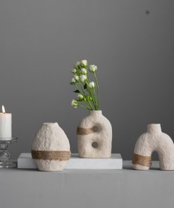 Ceramic crafts vegetarian fired earth glaze straps small vase three-piece set indoor home decorations