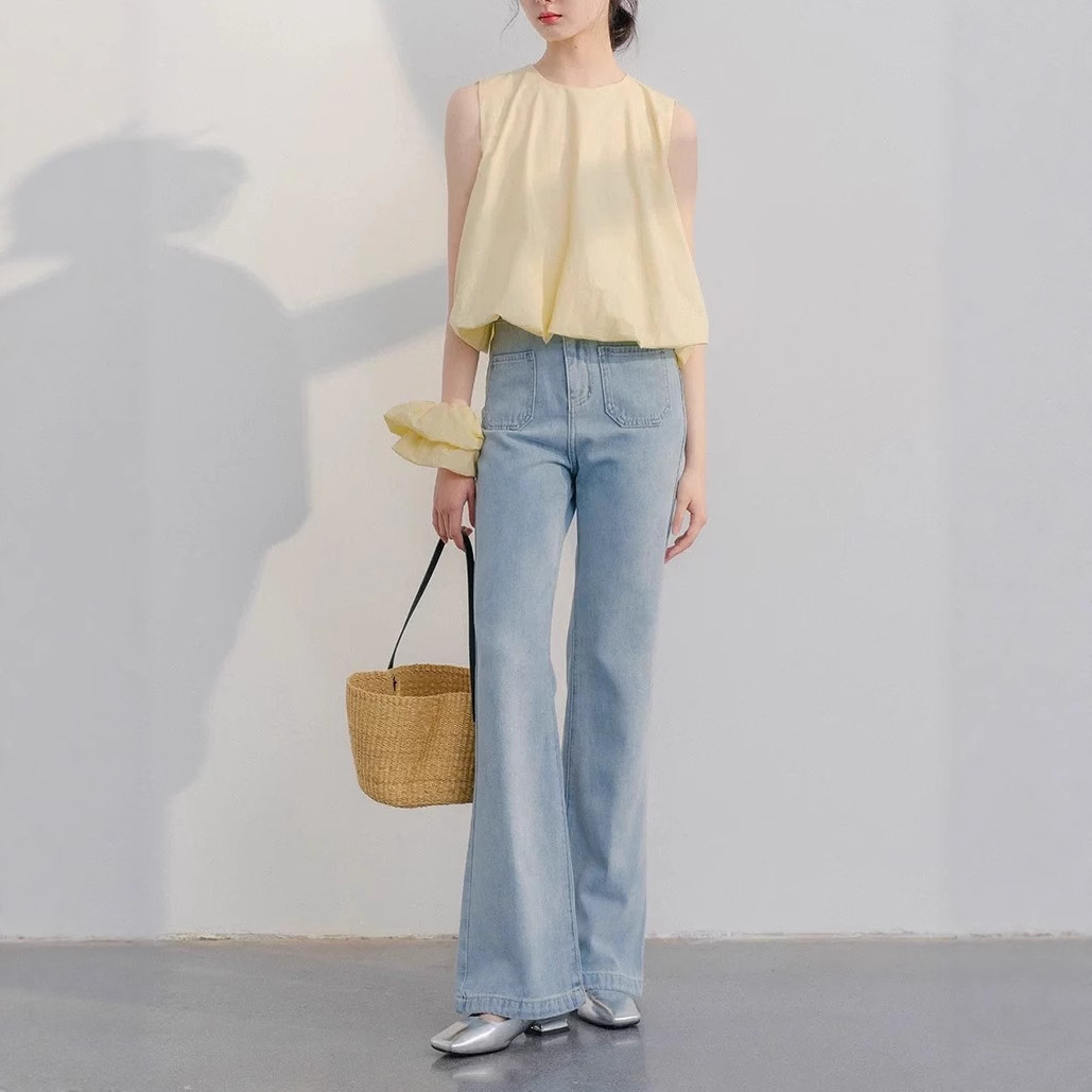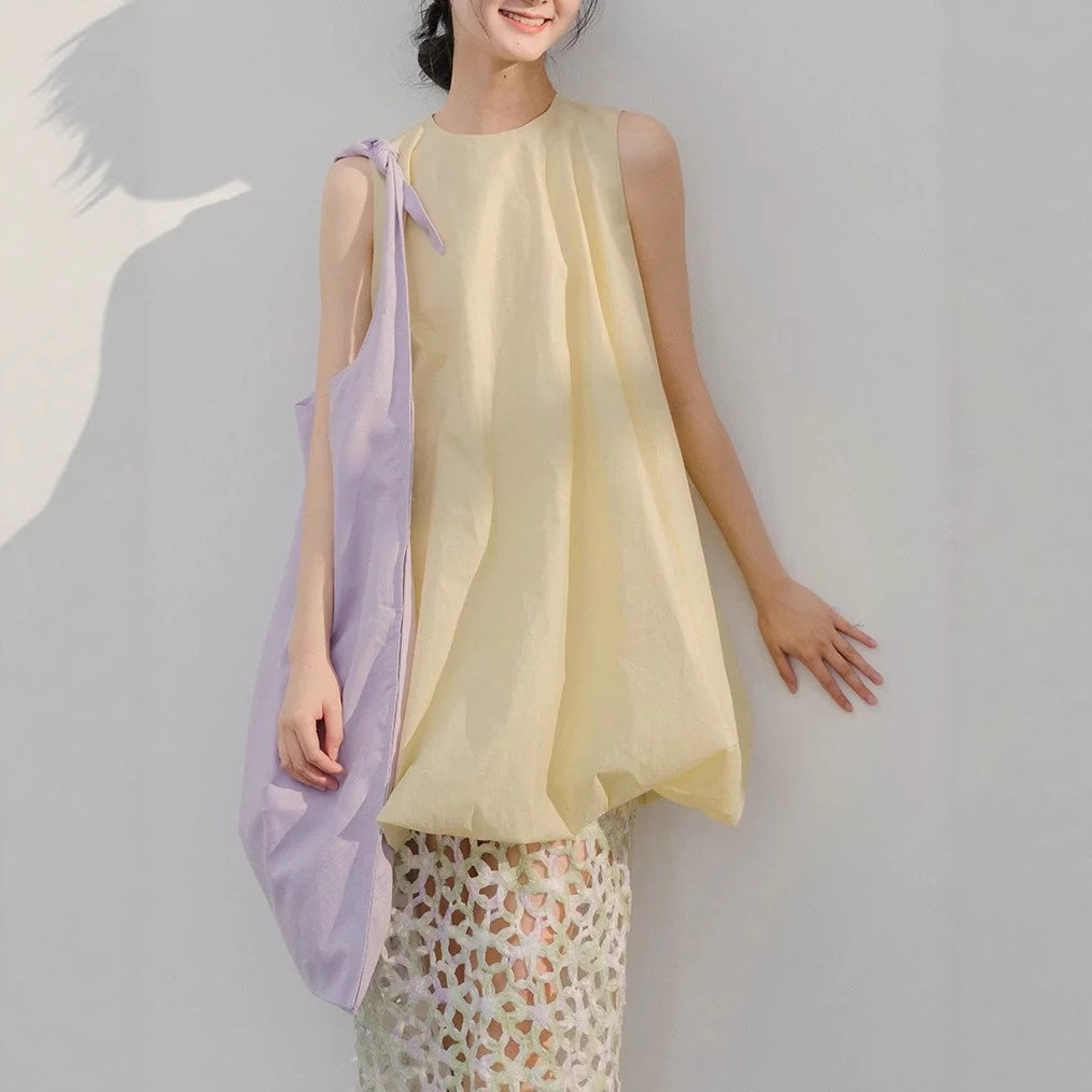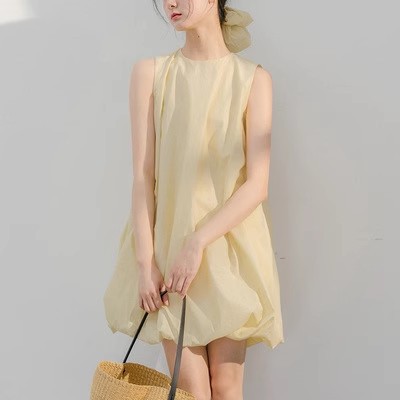 Cute butter puff dress/sleeveless vest