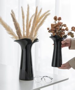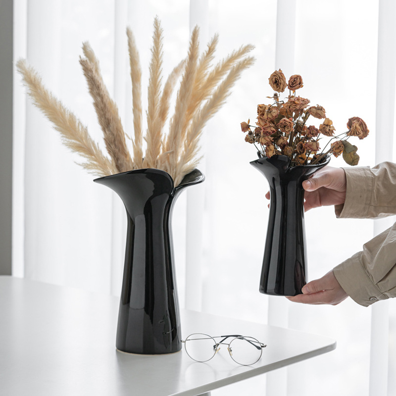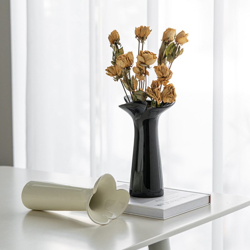Daimon Light luxury petals and ceramic vase beige white black glossy back mouth high-end home soft decoration ornaments