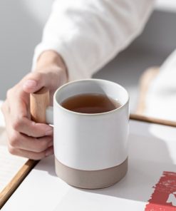 Damon Ceramic Cup Household Coffee Cup Water Cup Tea Cup Wooden Handle Mug Fashion Couple Brushing Teeth Against Cup