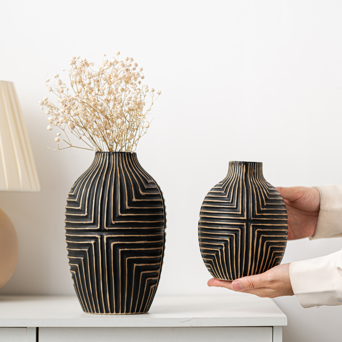 Damon modern simple vase ornaments geometric handmade home accessories countertop white simulated dry flowers