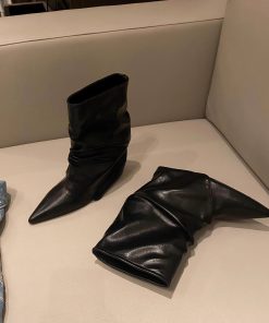 Design-sensual hot girl wedges trouser boots autumn and winter pointed toe single boots mid-heel fashion boots temperament fashionable short boots