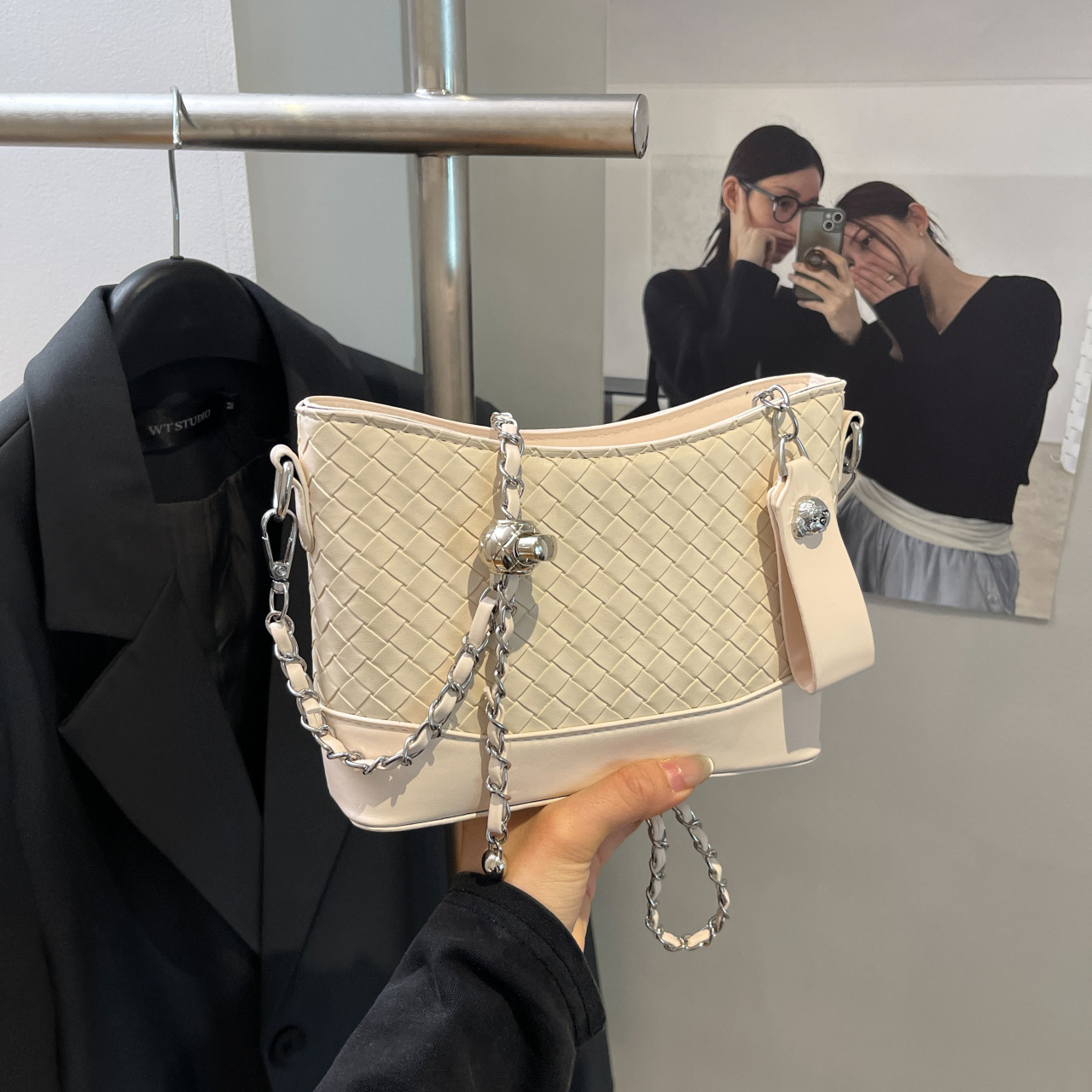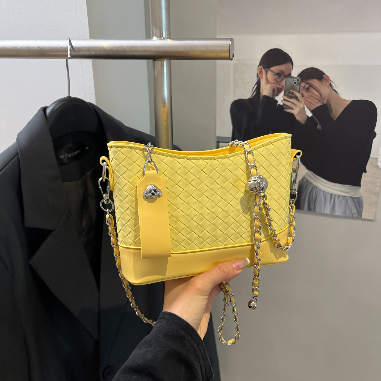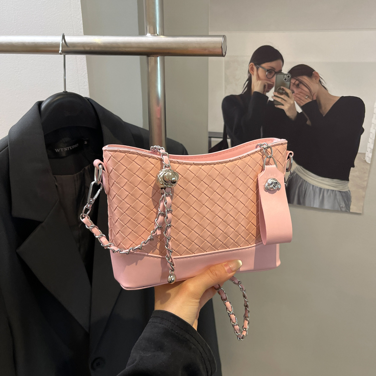 Diamond woven pattern bucket bag for women’s crossbody bag summer fashion texture versatile shoulder bag
