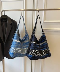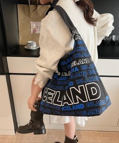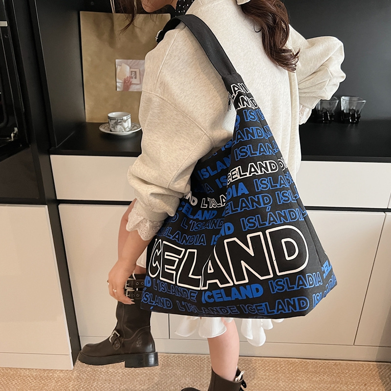 Diliba Iceland One-shoulder Canvas Bag for Teenagers Large Capacity Spring and Summer Simple Commuter Letter Tote Bag