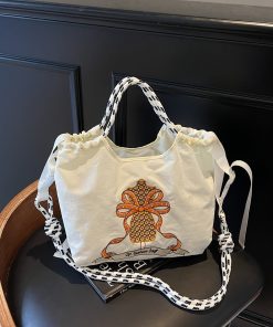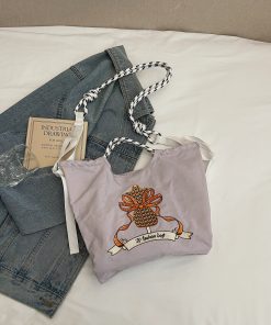 Embroidered shopping bags Nylon cloth flower portable niche fashion shopping bags