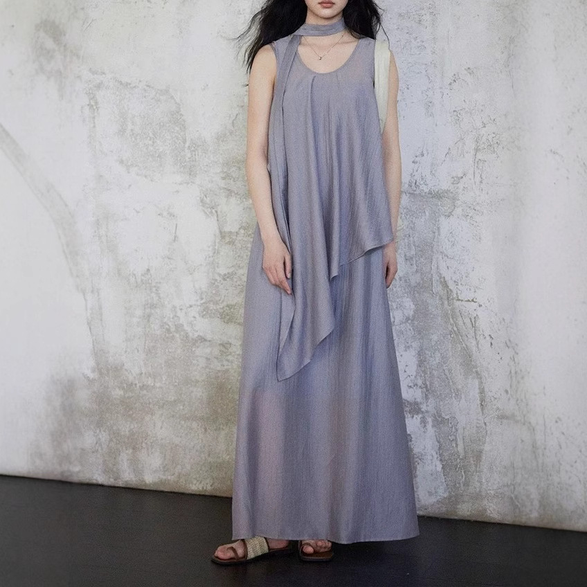 Eryang Design [Wangshu] Tiansi Flowing Temperament Lazy Style Irregular Sleeveless Vest + Large Sling Sling Skirt