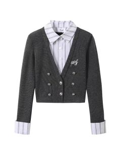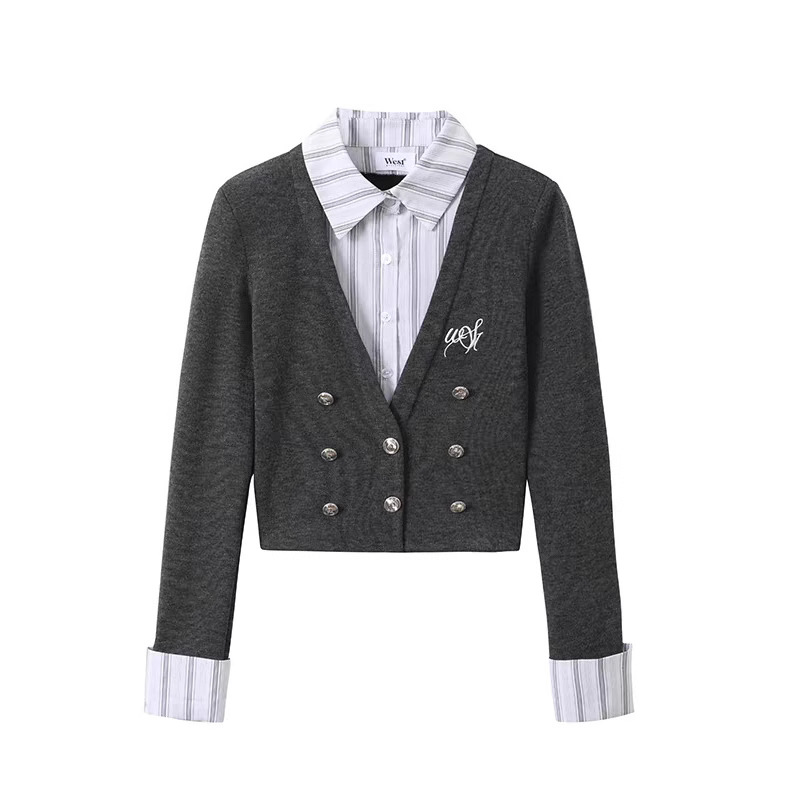 Fake two-piece top design and temperament spliced ​​top spring commuting