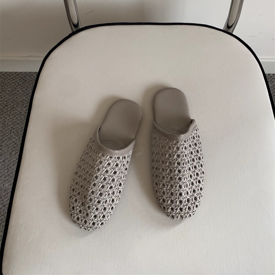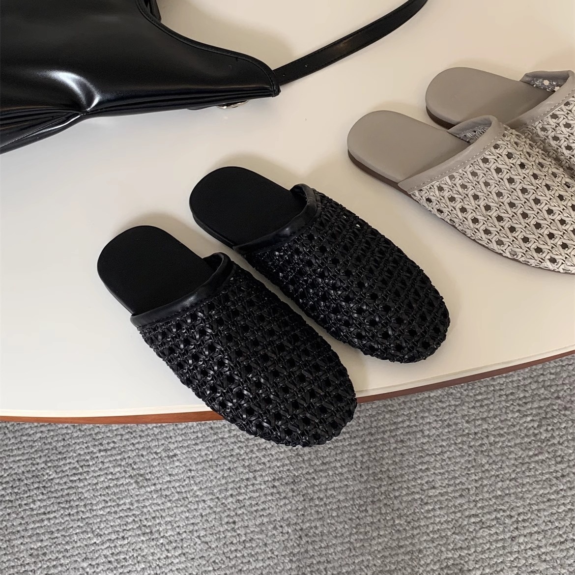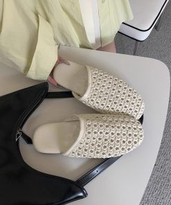 Fashionable French hollow breathable woven head-pack slippers for women in summer flat-sole skirt with sandals