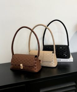 Fashionable retro solid color small square bag for women in spring fashion light luxury versatile commuter shoulder bag