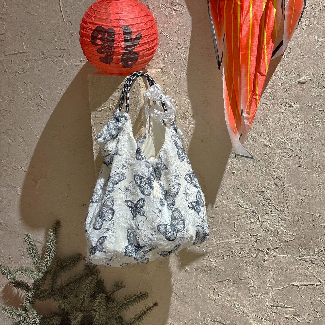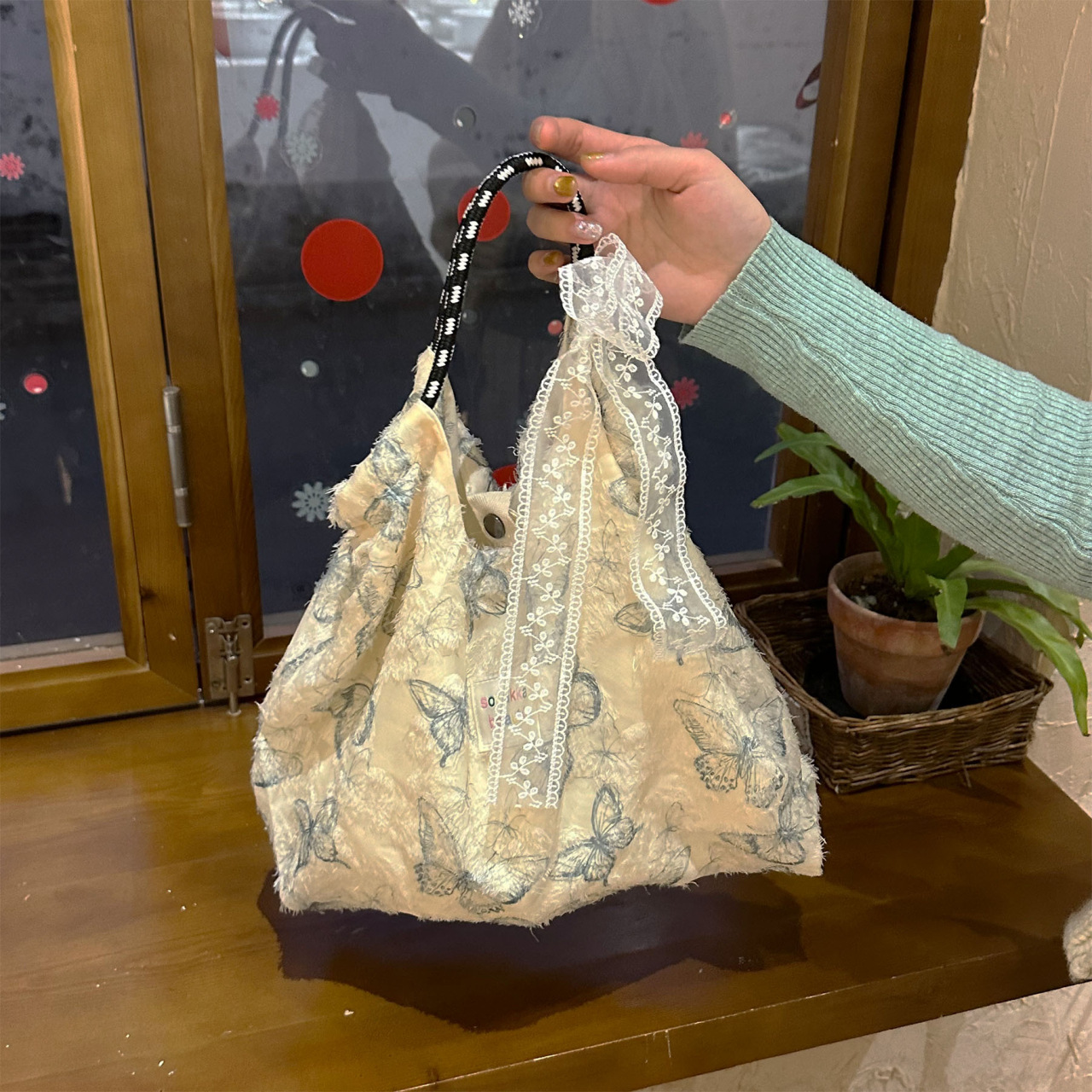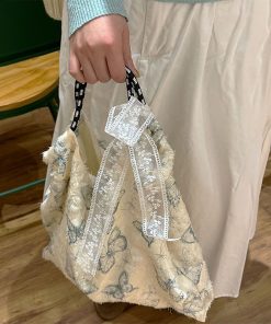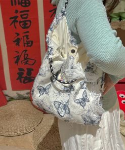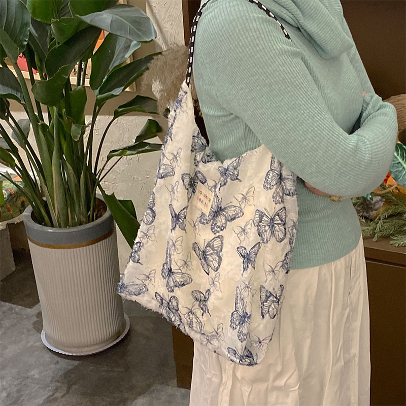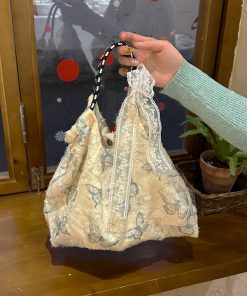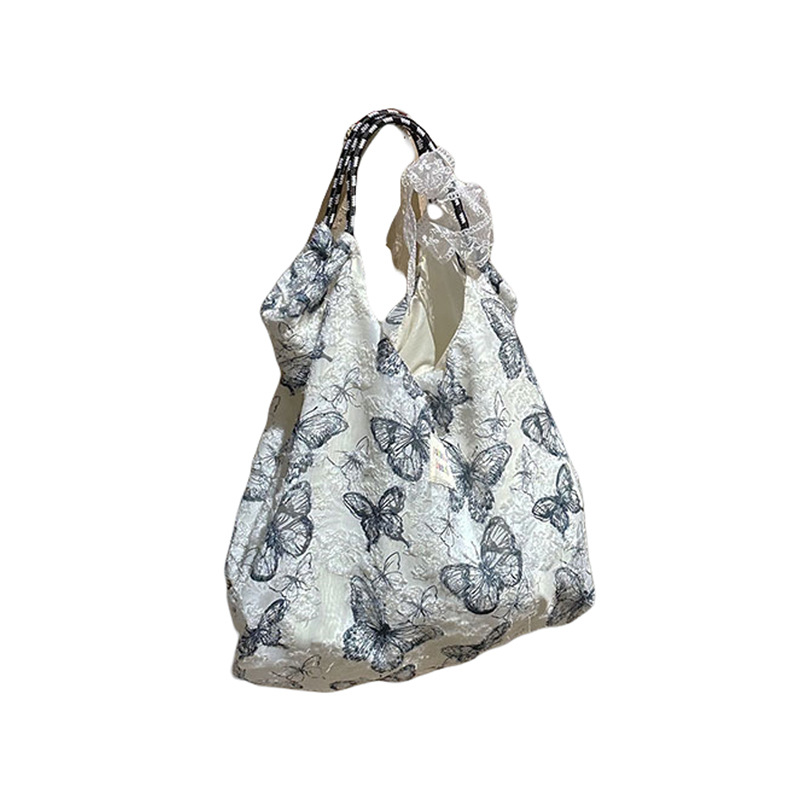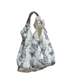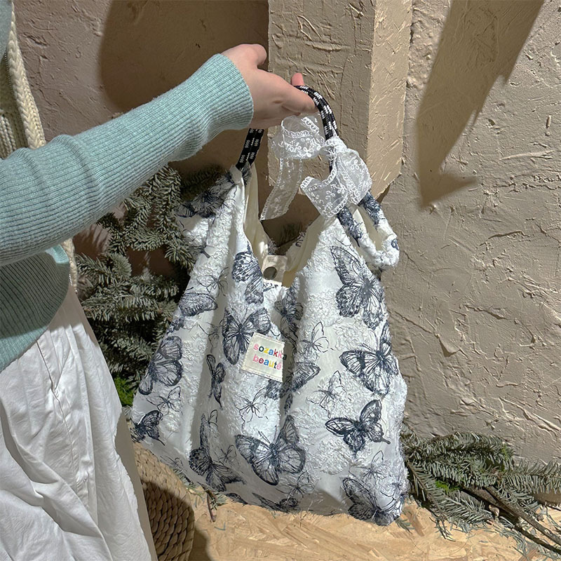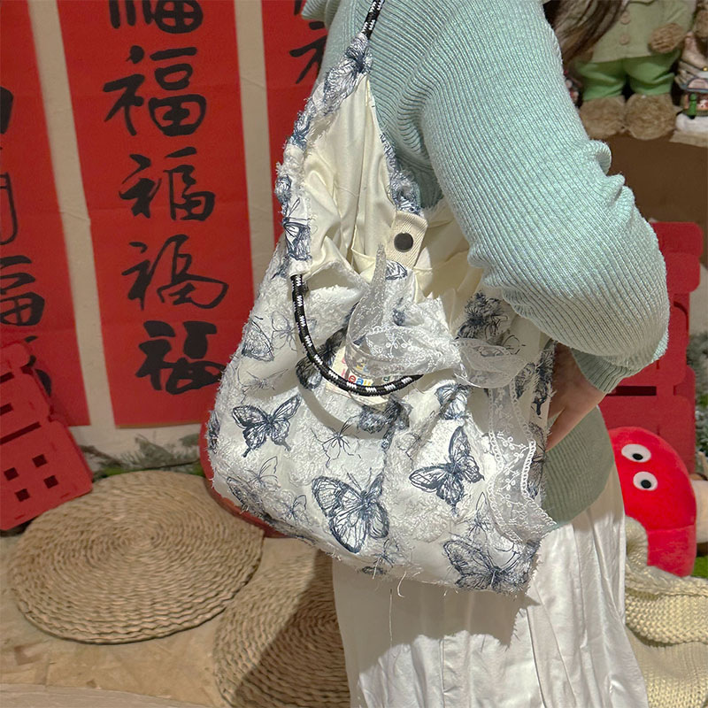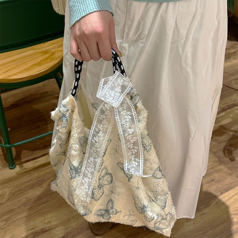 Forest Chinese style canvas handbag shoulder bag fairy lace butterfly student satin tote bag