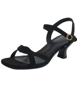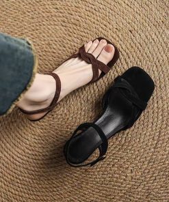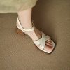 French beautiful small heel sandals for women in summer wear matte soft leather thick heel soft sole simple and not tired high heels fashionable