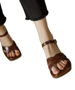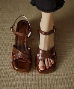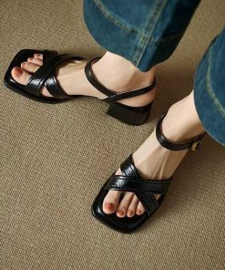 French beautiful small sandals for women in summer, wearing thick heels and soft soles, mother’s shoes without tiring feet, high heels with skirt