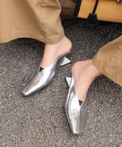 French beautiful temperament without tiring feet, heels, high heels, muller half-tow sandals for spring, half-block sandals for women in summer