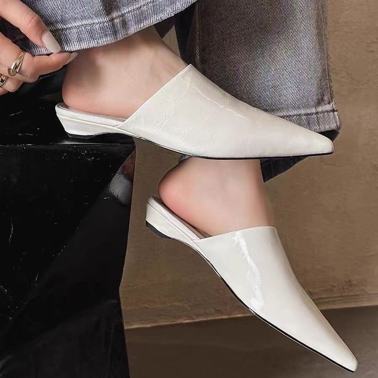 French high-end semi-slippers for women in spring and summer retro muller sandals pointed toe one foot pedal bag-toe slippers outside