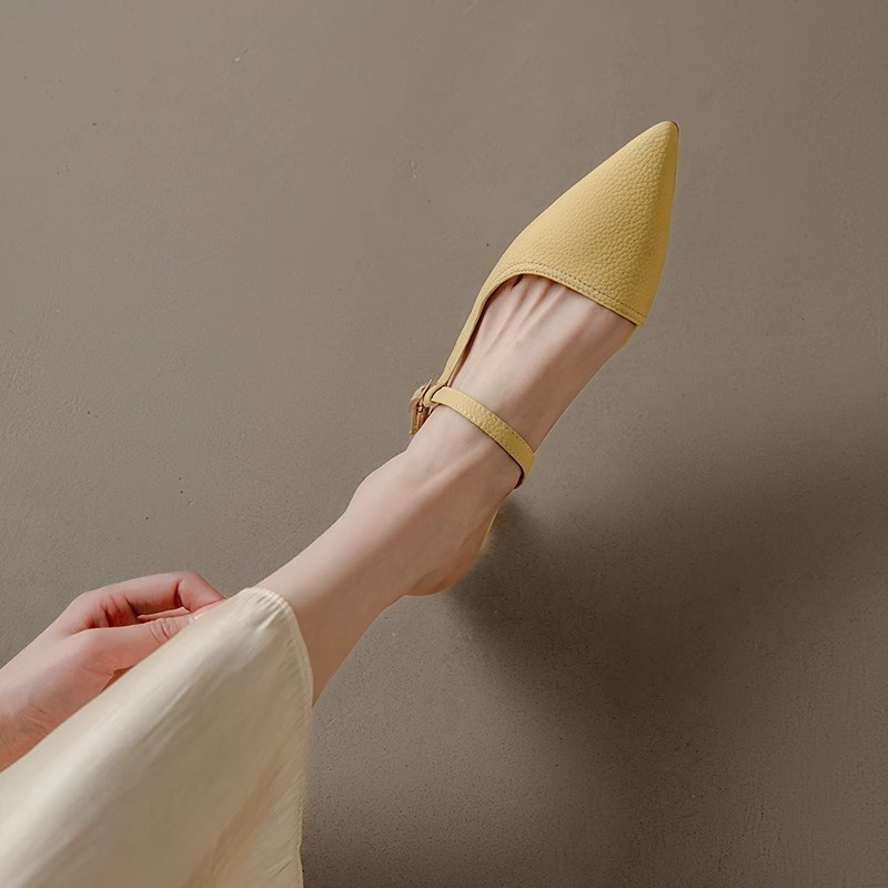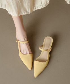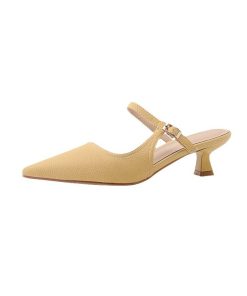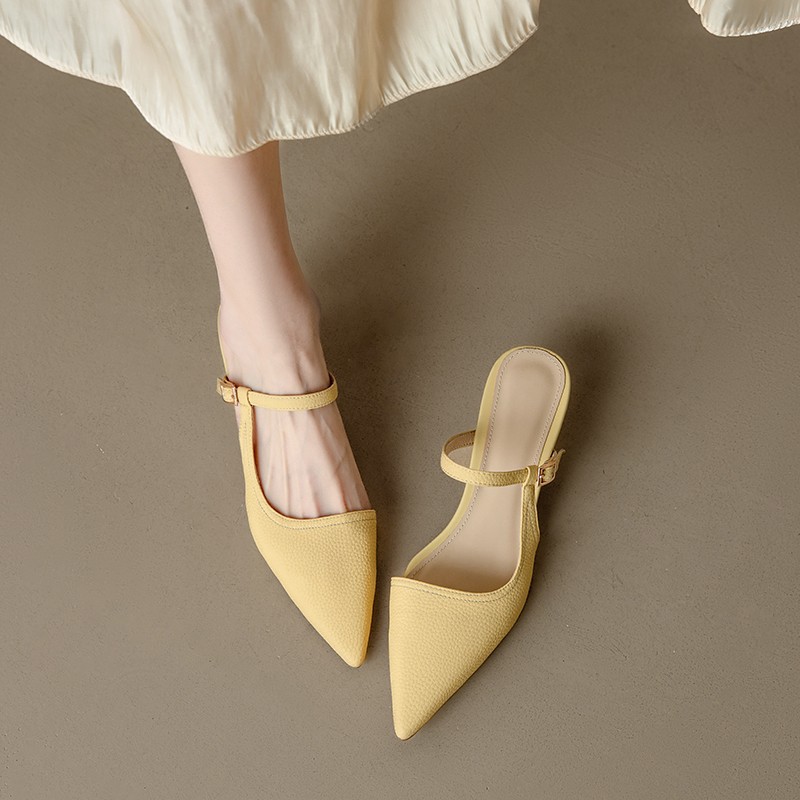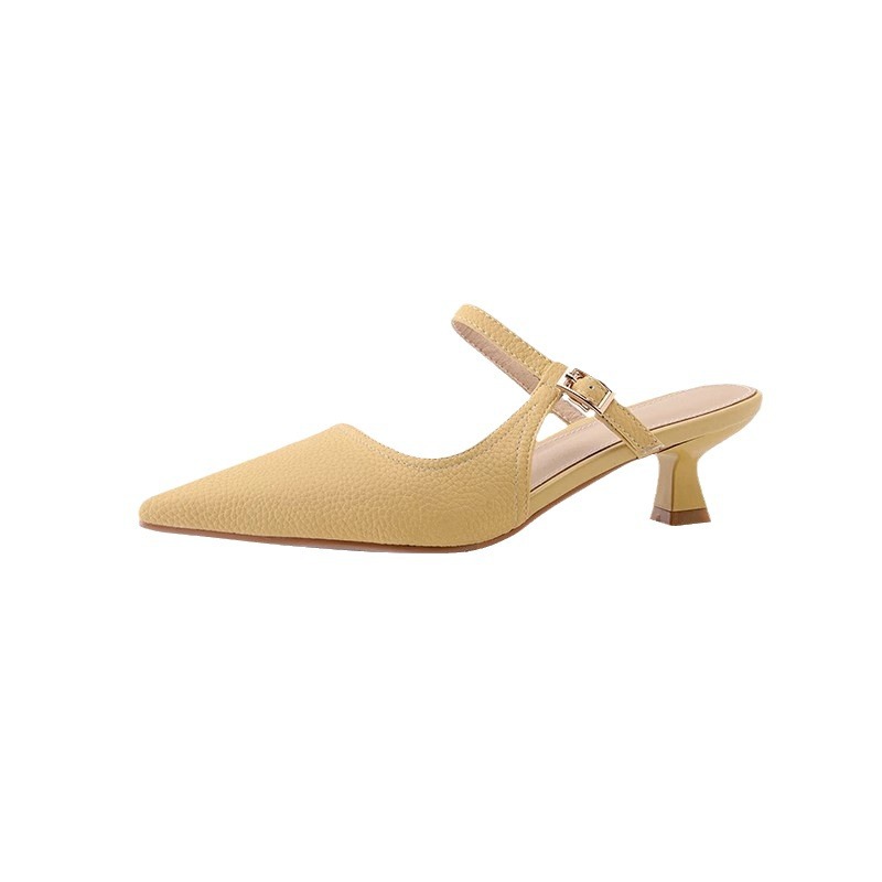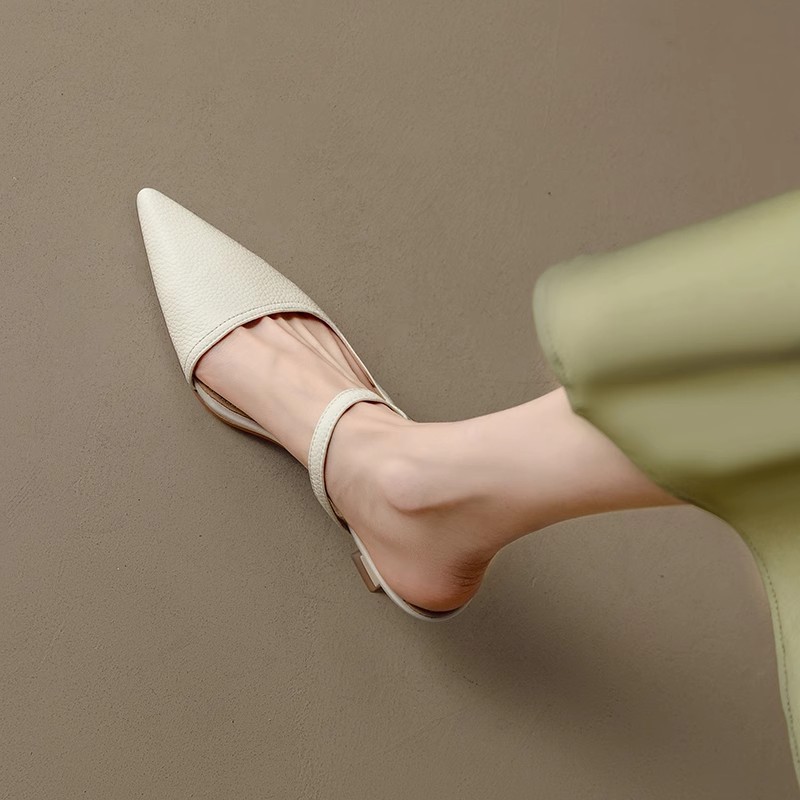 French lychee pattern slim heel bag sandals for women in summer, pointy toe outside cat heel half slippers sandals