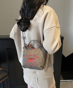 French niche versatile college style one-shoulder hand bucket bag for women trendy fashion one-shoulder crossbody bag for women