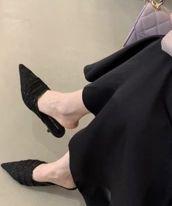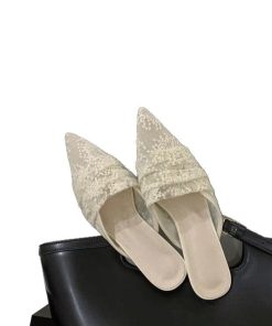 French pointed mesh half-slippers for women wearing lace temperament high-end sandals