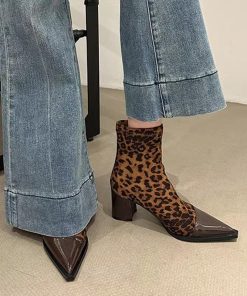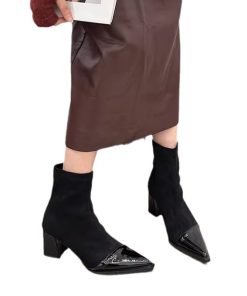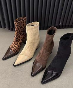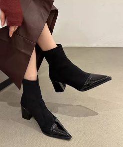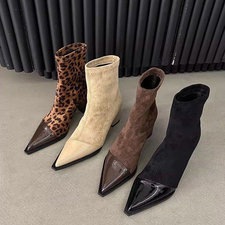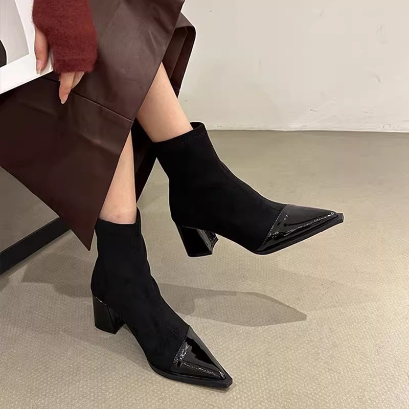 French slim elastic short boots for women in autumn and winter small fragrance style pointed toe thick heel thin boots for women high heels