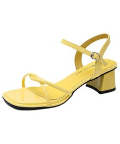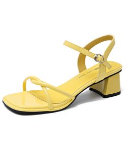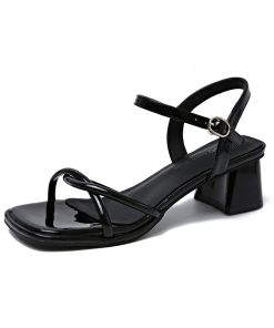 French style square-toe open-toe thick-heeled sandals for women in summer one-strip beautiful high-heeled sandals