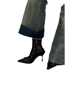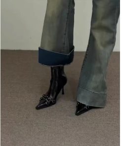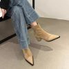 French temperament short boots for women with thin heels high-end rivet pointed toe thin boots stretch high heels