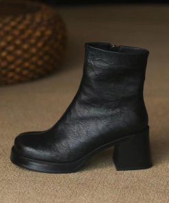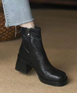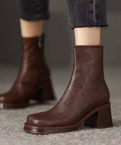Giant comfortable fashion thick sole short boots for women thick heels autumn and winter soft leather boots retro stilettos Martin boots