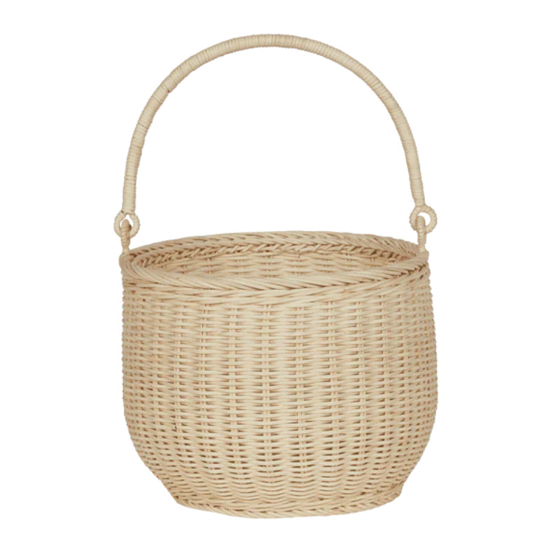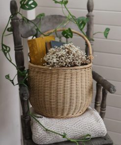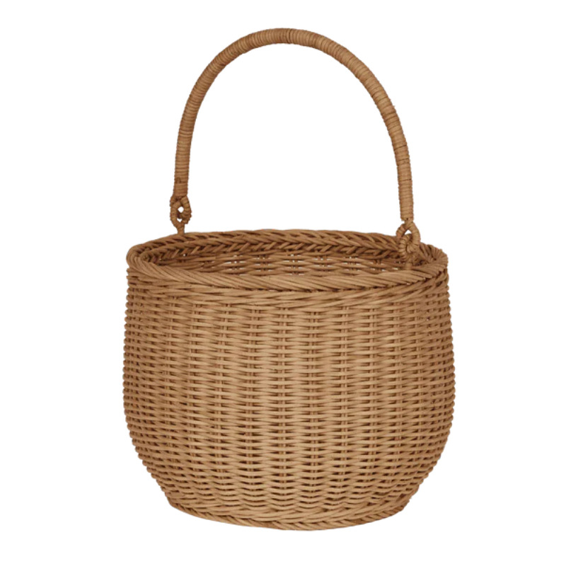 Handheld storage imitation rattan woven basket outdoor picnic fruit basket flower arrangement handheld basket children’s flower picking basket