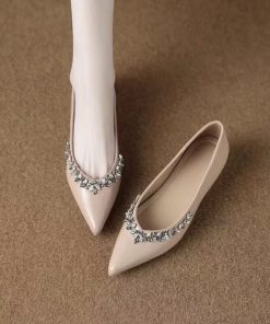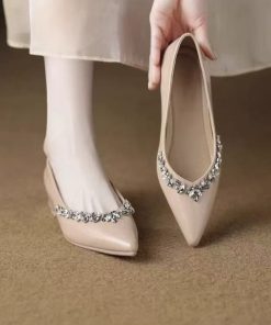 High-high-end pointed toe shallow mouth beautiful small heels single shoes for women in spring and summer rhinestone temperament evening shoes with skirt