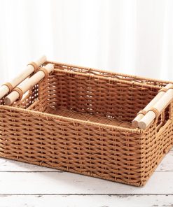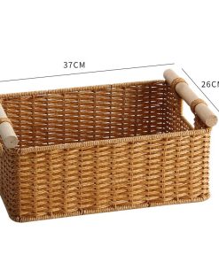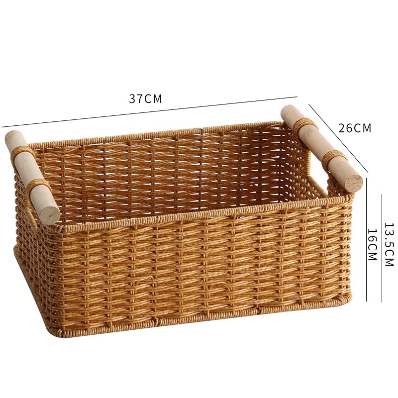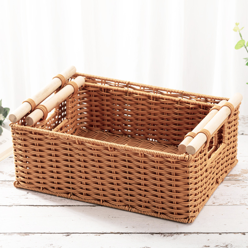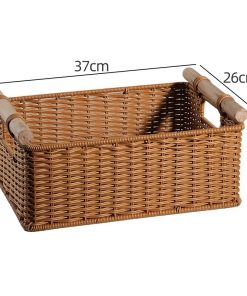 Imitation rattan basket rectangular desktop storage basket household living room debris storage basket plastic rattan snack storage box