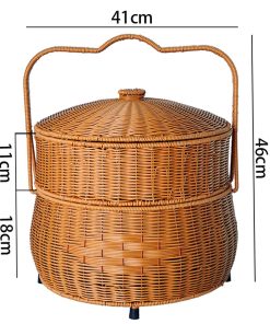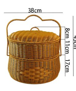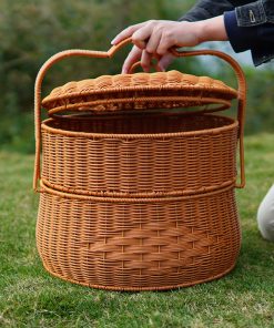 Imitation rattan cargo basket with double-layer cover with worship basket wedding housewarming event basket home use large picnic basket storage basket