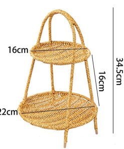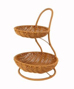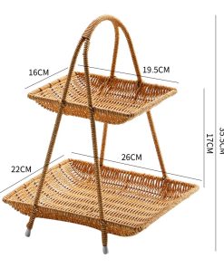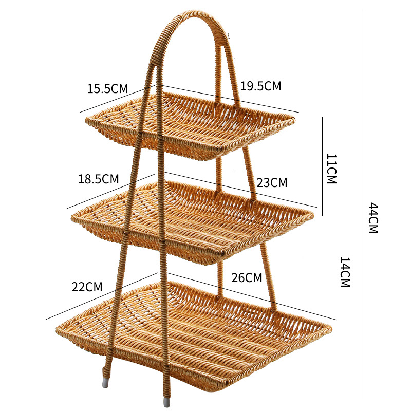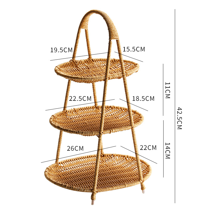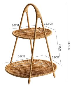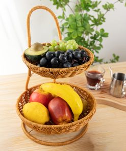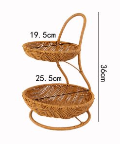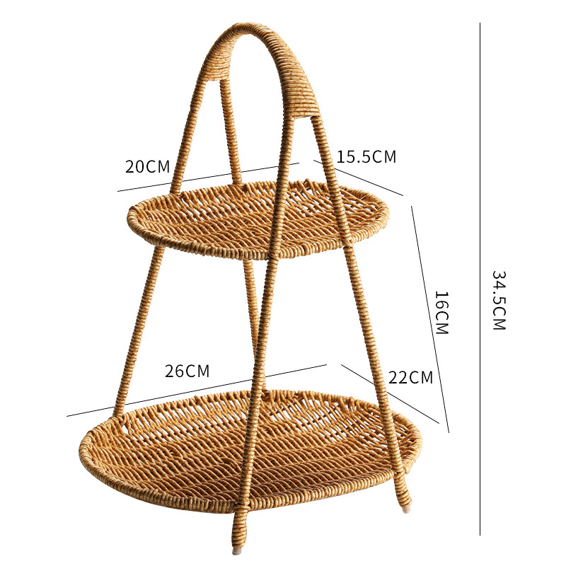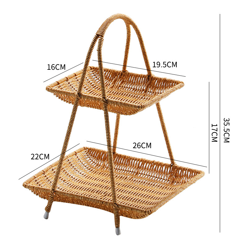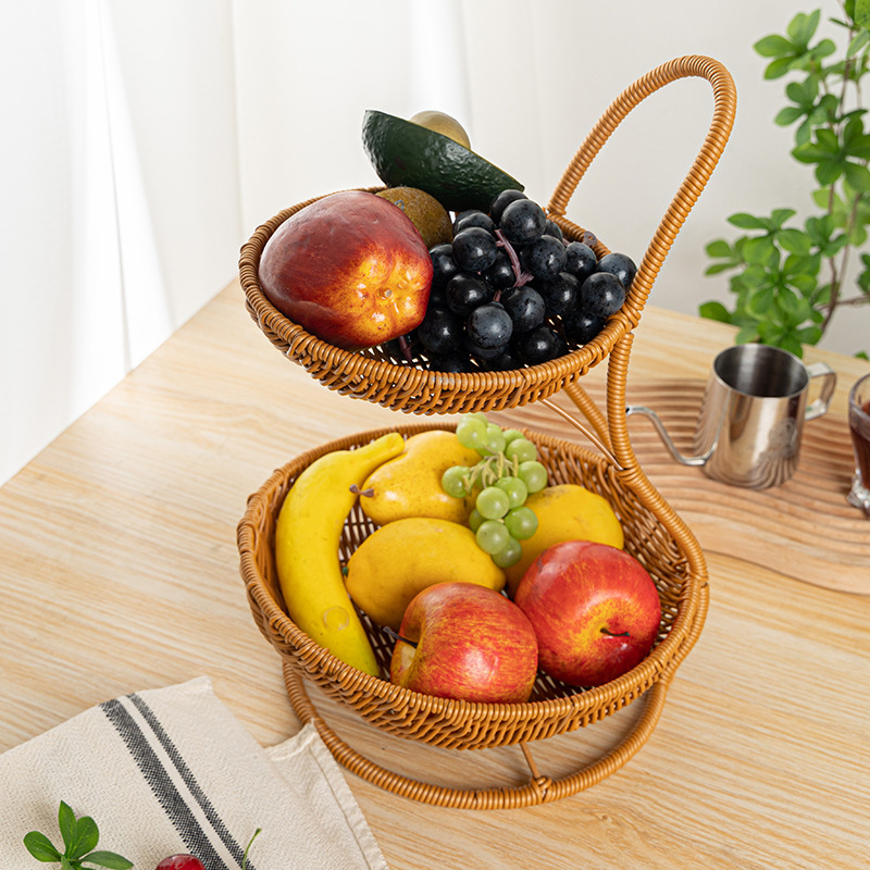 Imitation rattan double-layer light luxury fruit basket for household living room snack storage rack, coffee table fruit tray storage basket