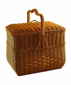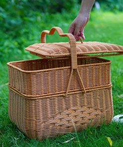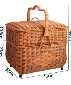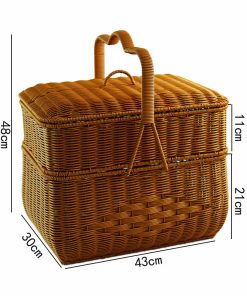 Imitation rattan house cargo basket double-layer worship basket outdoor rectangular picnic basket with cover wedding ceremony gift basket woven basket