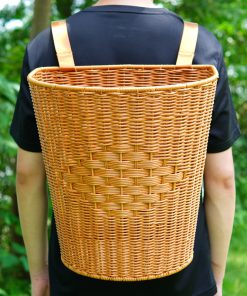 Imitation rattan reinforced back basket grocery shopping shoulder basket outdoor mushroom picking basket picnic basket hand-woven storage basket