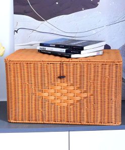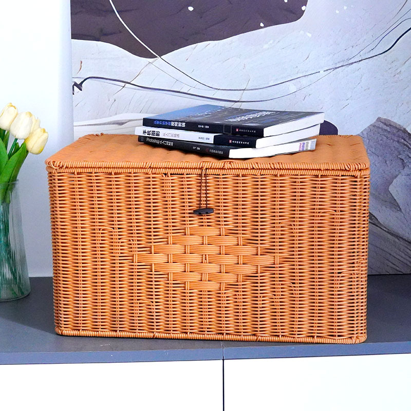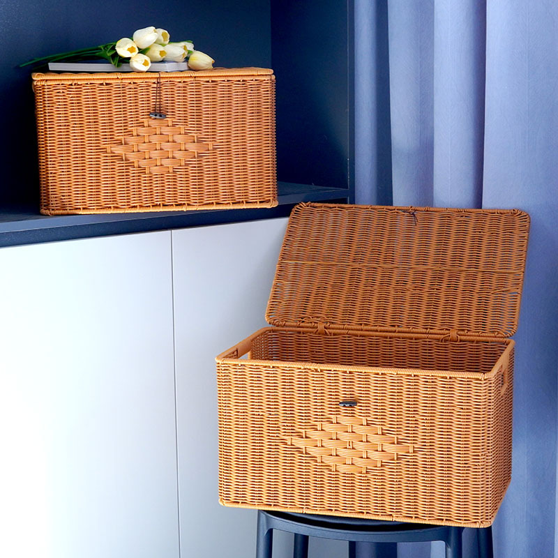 Imitation rattan woven handheld storage box flip storage box household cabinet clothing storage basket desktop debris storage box