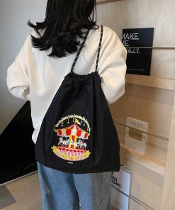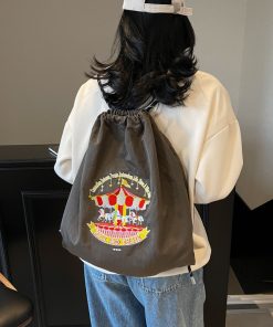Japanese fashion brand fashion backpack cute cartoon environmentally friendly drawstring large capacity embroidery casual student bag