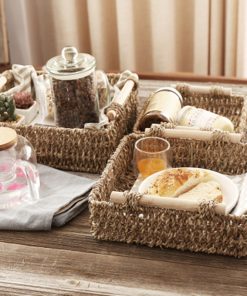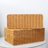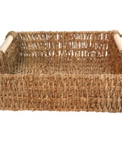 Japanese straw wood handle desktop storage basket storage box bathroom cosmetics seaweed storage snack basket