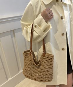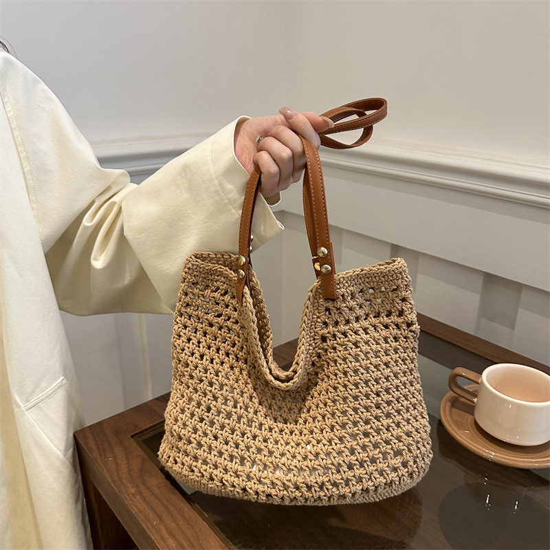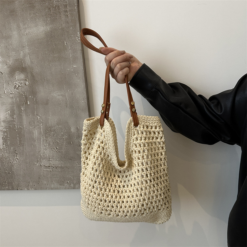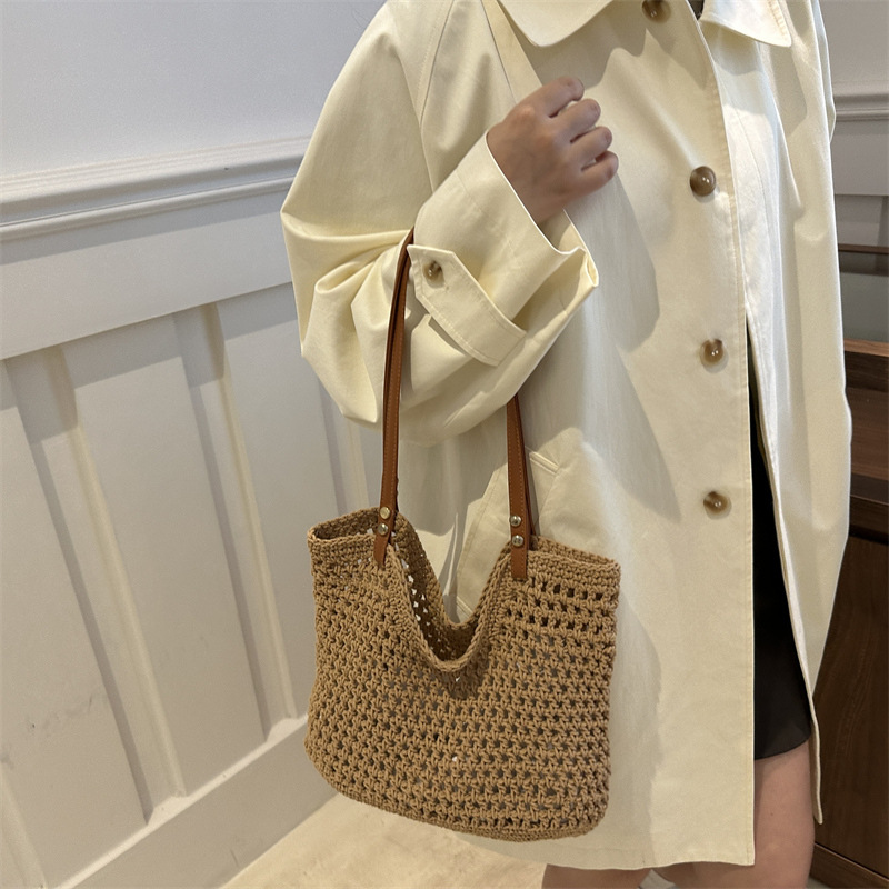 Large capacity summer beautiful one-shoulder beach vacation beach bag woven leisure commuter tote bag for women